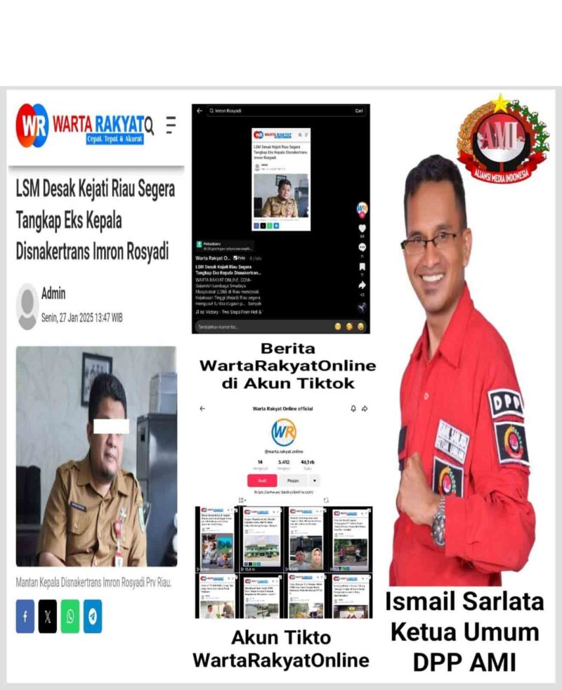 PEKANBARU —- Beredarnya pemberitaan yang terkesan mencatut nama Ketua Umum dan Organisasi Pers Aliansi Media Indonesia (AMI), Ismail Sarlata Angkat Bicara.