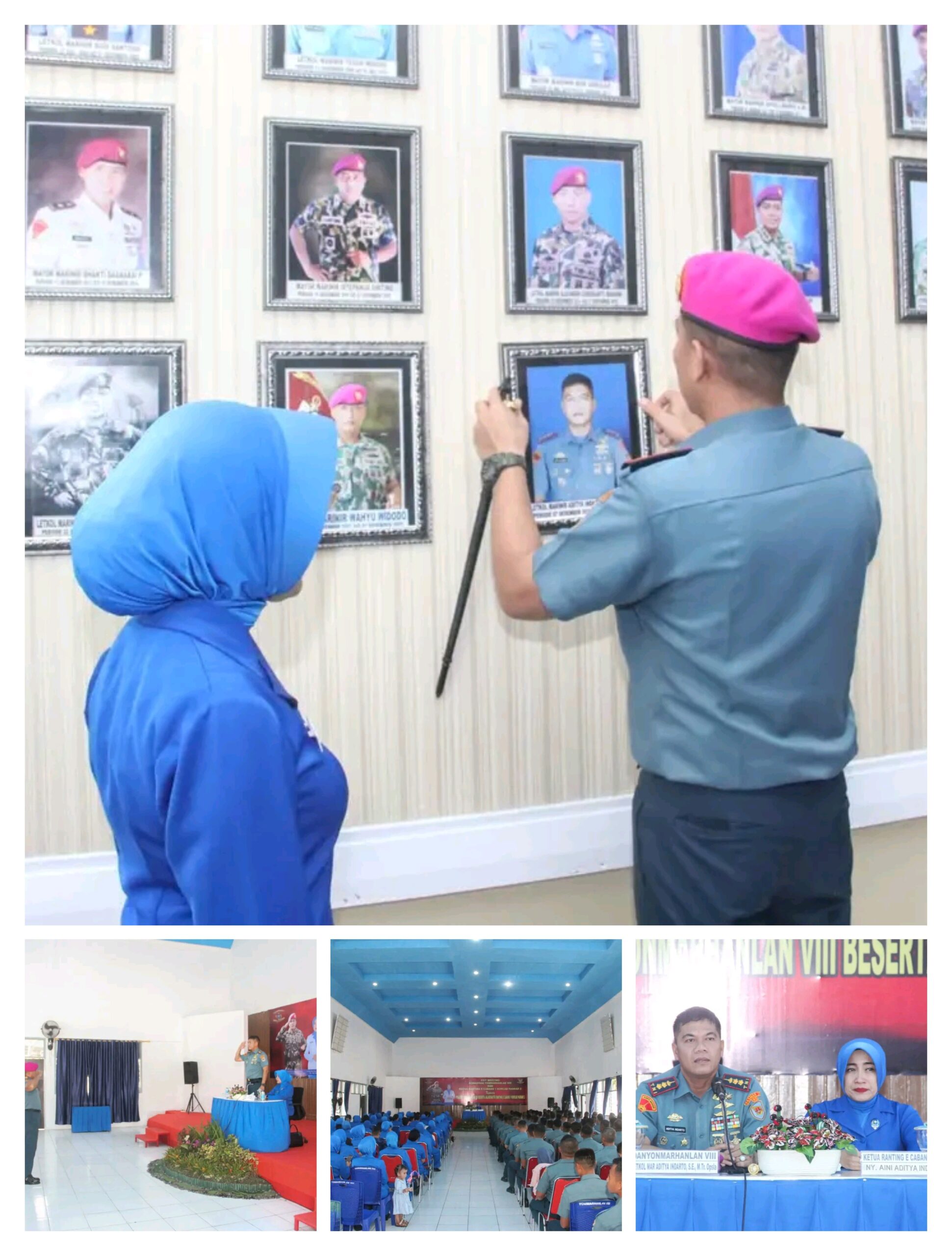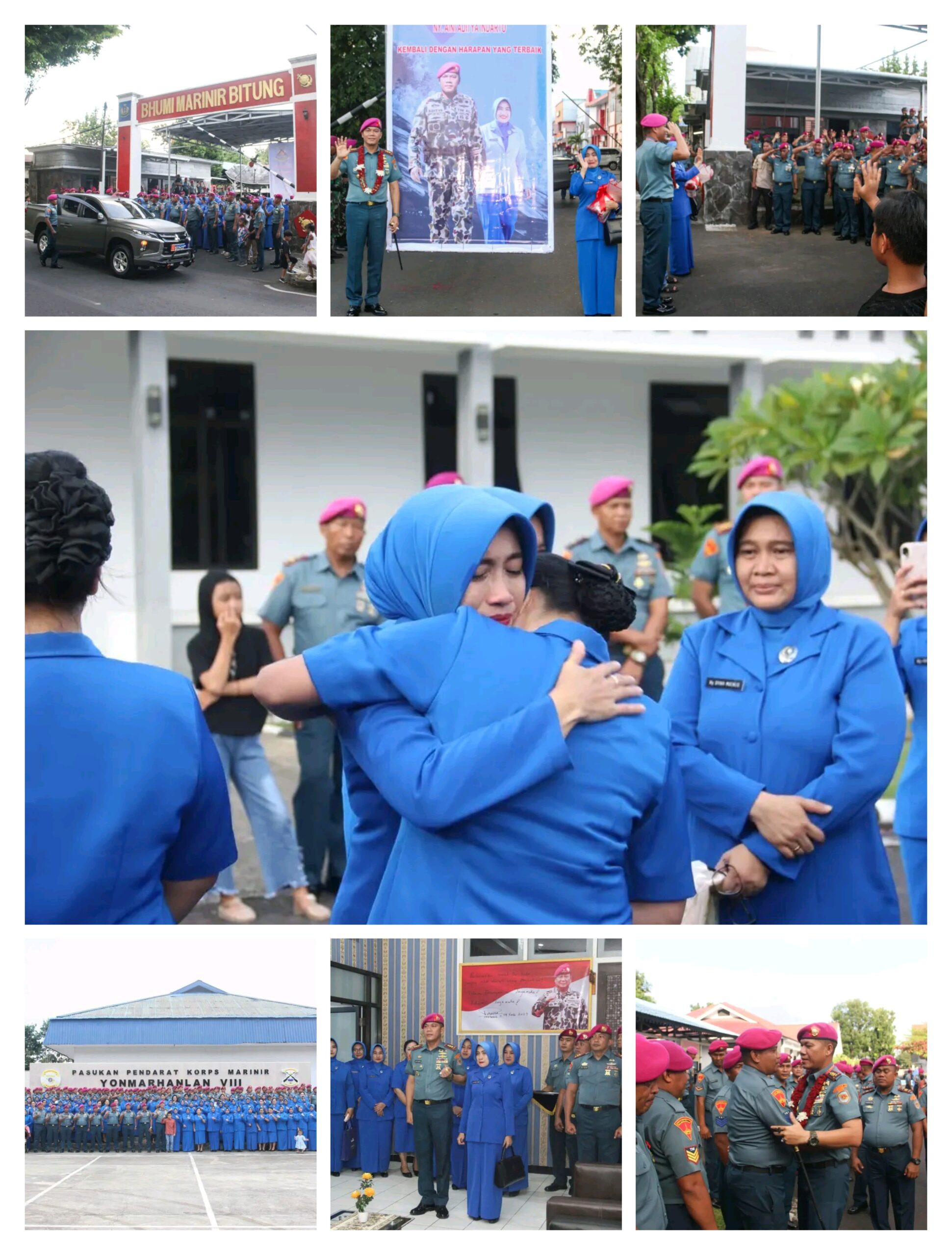 TNI AL, Dispen Kormar (Bitung) Dalam rangka Serah Terima Jabatan di Surabaya, Danyonmarhanlan VIII Bitung Letkol Marinir Aditya Indarto, S.E., M.Tr.Opsla didampingi Ketua Ranting E Cab. 1 KP. 2 Ny. Aini Aditya Indarto melaksanakan Exit Briefing dan acara tradisi pelepasan di Yonmarhanlan VIII Kec Maesa Kota Bitung, Jumat (14/02/2025)
