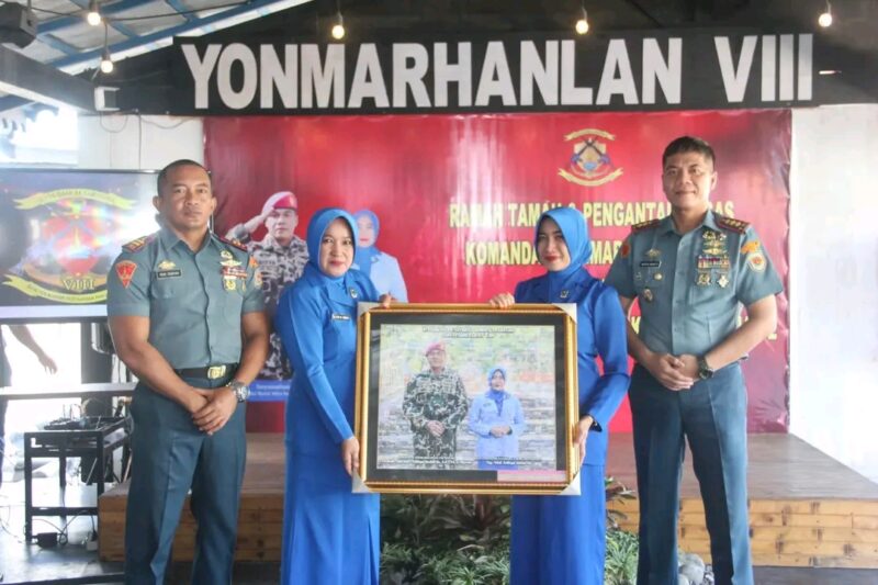 TNI AL, Dispen Kormar (Bitung) Dalam rangka Serah Terima Jabatan di Surabaya, Danyonmarhanlan VIII Bitung Letkol Marinir Aditya Indarto, S.E., M.Tr.Opsla didampingi Ketua Ranting E Cab. 1 KP. 2 Ny. Aini Aditya Indarto melaksanakan Exit Briefing dan acara tradisi pelepasan di Yonmarhanlan VIII Kec Maesa Kota Bitung, Jumat (14/02/2025)