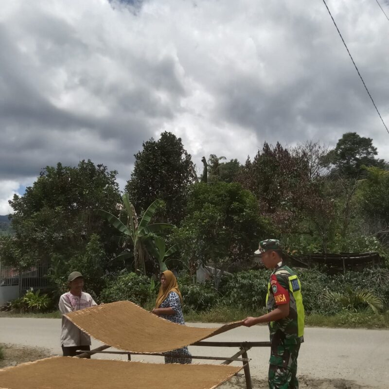 Pererat Hubungan Silaturahmi, Babinsa Membantu Petani Jemur Tembakau