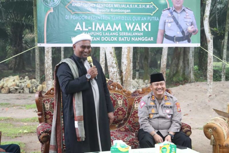 Simalungun, 11 Maret 2025 – Kapolres Simalungun AKBP Choky Sentosa Meliala, S.I.K., S.H., M.H. bersama jajaran Polres Simalungun menggelar kegiatan Safari Ramadhan berupa silaturahmi dan bakti sosial di Pesantren Al Imam Waki, Lingkungan VI Kampung Lalang, Kelurahan Serbalawan, Kecamatan Dolok Batu Nanggar, Kabupaten Simalungun pada Selasa (11/3/2025). Kegiatan yang berlangsung mulai pukul 17.30 WIB hingga selesai ini merupakan bagian dari rangkaian safari Ramadhan Polres Simalungun selama bulan suci Ramadhan 1446 H.