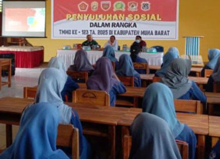 Muna Barat–Dalam upaya menanamkan Semangat nasionalisme sejak dini, Satgas TNI Manunggal Membangun Desa (TMMD) ke-123 Kodim 1416/Muna menggelar penyuluhan wawasan kebangsaan bagi para pelajar SMAN 1 Tikep Kel. Waumere Kec. Tikep Kab. Muna Barat, (10/3/2025).