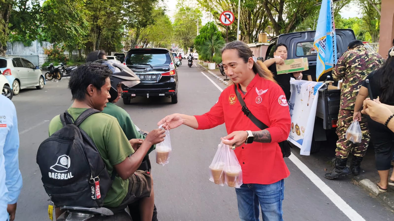 Gabungan Ormas Adat Minahasa, Bersama LSM Dan Ketua Praka DPC Manado, Frits, Cho Membagikan Takjil. Manado Sulut