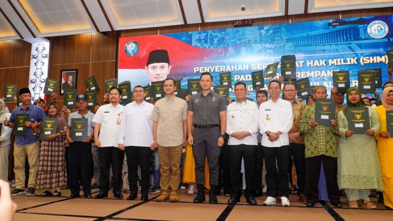 BATAM || Wujud Nyata dalam Penyelesaian Sengketa Tanah sekaligus Penertiban Penetapan Kawasan Transmigrasi Barelang dan keseriusan dalam Rencana Menetapkan Kawasan Transmigrasi Batam, Rempang, Galang (Barelang), di bawah Koordinasi Kementerian Koordinator Bidang Infrastruktur dan Pembangunan Kewilayahan (Kemenko IPK), Kementerian Transmigrasi bersama Kementerian Agraria dan Tata Ruang/Badan Pertanahan Nasional (ATR/BPN) bagikan 68 Sertifikat Hak Milik (SHM) bidang tanah kepada warga Tanjung Banur, Rempang, di Kantor Badan Pengusahaan Batam.