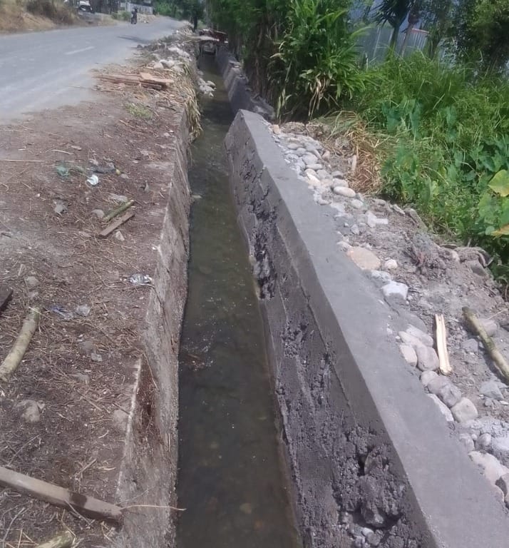 Kemudian pekerjaan pembangunan tembok penahan tebing di pamplet, namun dilapangan dikerjakan irigasi yang lama hanya dilapisi dari luar. Dugaan volume menyimpang dari RAB dan dibuktikan dilapangan dihitung volume pengecoran dari lapis luar kita ambil sampel dan uji lap.