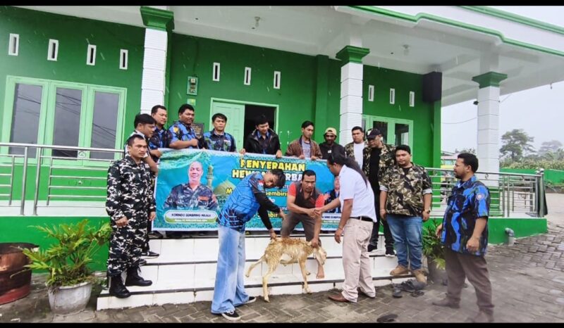 Tanah Karo – Dalam rangka menyambut dan merayakan hari raya Idul Adha 2025, Ketua PC PPM LVRI Kabupaten Karo yang juga menjabat sebagai Wakil Ketua DPRD Kabupaten Karo dari Fraksi Partai Gerindra, Korindo S Milala, bersama Ketua DPD IPK (Ikatan Pemuda Karya) Kabupaten Karo, Maha Sendi S Milala, menggelar kegiatan pembagian hewan kurban di sejumlah masjid yang tersebar di wilayah Kabupaten Karo, Kamis (6 Juni 2025).