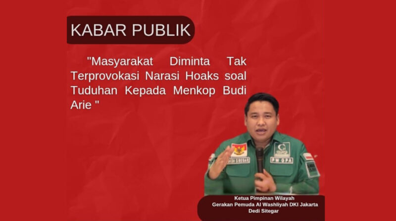 Ketua Pimpinan Wilayah Gerakan Pemuda Al-Wasliyah (PW GPA) DKI Jakarta, Dedi Siregar, meminta publik tidak mudah terpengaruh kabar bohong dan framing negatif terkait dugaan aliran dana judi online yang terus menuding Menteri Koperasi Budi Arie terlibat.
