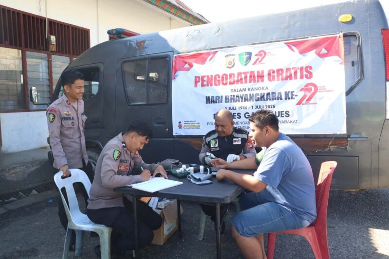Blangkejeren – Dalam rangka memperingati Hari Bhayangkara ke-79 Tahun 2025, Polres Gayo Lues melaksanakan kegiatan pengobatan gratis yang dipusatkan di Terminal Terpadu, Desa Bustanussalam, Kecamatan Blangkejeren, Kabupaten Gayo Lues. Kegiatan ini dimulai sejak pukul 09.00 WIB pada Kamis, 19 Juni 2025, dan disambut dengan antusias oleh masyarakat, khususnya para sopir angkutan umum dan pengguna jasa transportasi yang berada di kawasan terminal.