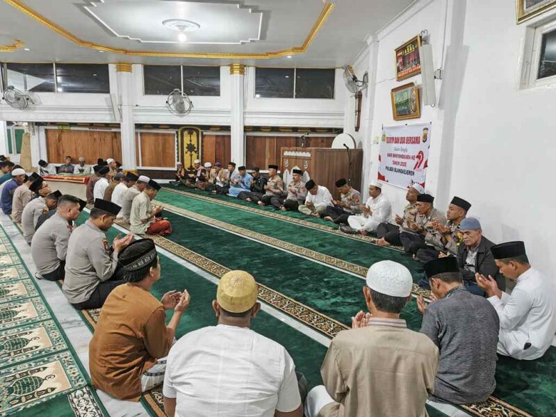 Blangkejeren – Dalam rangka menyambut Hari Bhayangkara ke-79 yang jatuh pada 1 Juli 2025, Kepolisian Resor Gayo Lues menggelar kegiatan Zikir dan Doa Bersama pada Jumat malam, 27 Juni 2025, bertempat di Masjid Asal, Desa Penampaan, Kecamatan Blangkejeren, Kabupaten Gayo Lues.