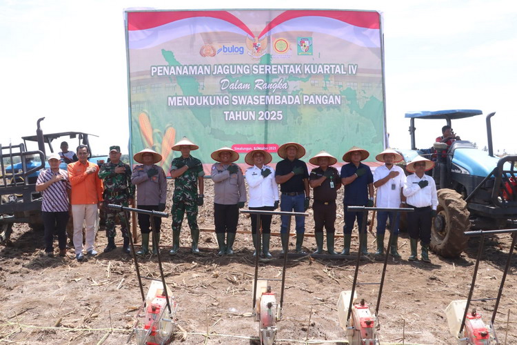 SIMALUNGUN – Kapolres Simalungun AKBP Marganda Aritonang, S.H., S.I.K., M.M., memimpin pelaksanaan penanaman jagung serentak kuartal IV tahun 2025 di Kabupaten Simalungun, Sumatera Utara, pada Rabu (08/10/2025). Kegiatan yang berlangsung pukul 09.00 WIB hingga selesai ini merupakan bagian dari program nasional yang dipimpin langsung oleh Kapolri Jenderal Polisi Drs. Listyo Sigit Prabowo, M.Si., dan dihadiri oleh Wakil Presiden Gibran Rakabuming Raka secara virtual melalui aplikasi Zoom Meeting.