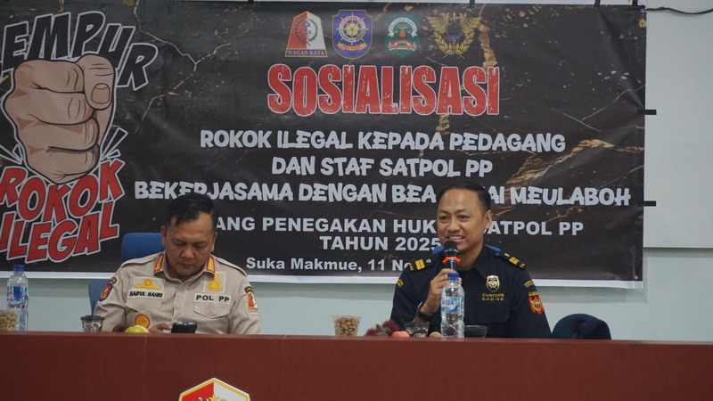 Nagan Raya, (11/11) — Dalam rangka meningkatkan pemahaman masyarakat mengenai ketentuan di bidang cukai dan bahaya peredaran rokok ilegal, Bea Cukai Meulaboh bekerja sama dengan Pemerintah Kabupaten Nagan Raya menyelenggarakan kegiatan “Sosialisasi Cukai dan Rokok Ilegal” di Aula Gedung BKKBN Kabupaten Nagan Raya.