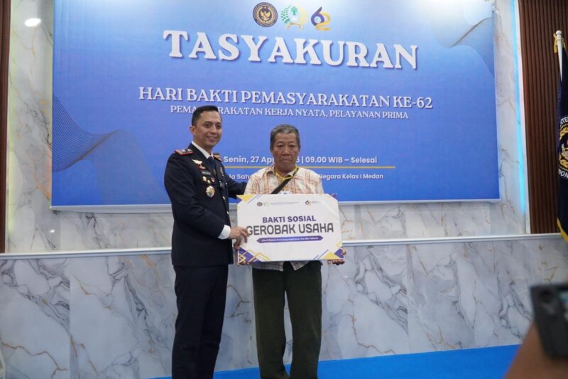 Usai kegiatan utama, Rutan Kelas I Medan melanjutkan rangkaian kegiatan dengan aksi sosial berupa pemberian bantuan gerobak usaha kepada keluarga warga binaan yang membutuhkan.