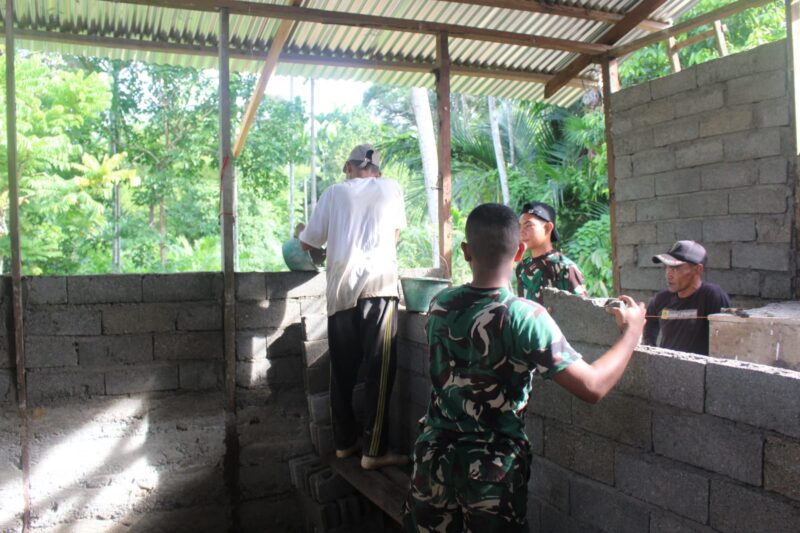 Salah satu sasaran yang tengah dikebut yakni perehaban Rumah Tidak Layak Huni (RTLH). Dalam proses pengerjaannya, tampak personel TNI dan warga saling bahu-membahu, mulai dari penyusunan batako hingga pengerjaan dinding rumah.