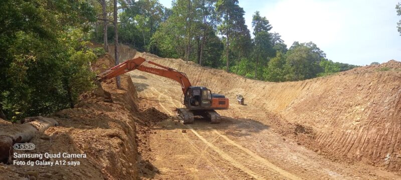 Dalam proses pengerjaannya, Satgas TMMD turut memaksimalkan penggunaan alat berat excavator guna mempercepat pembukaan badan jalan di medan yang cukup menantang.